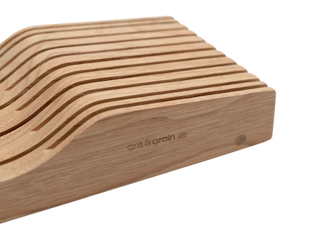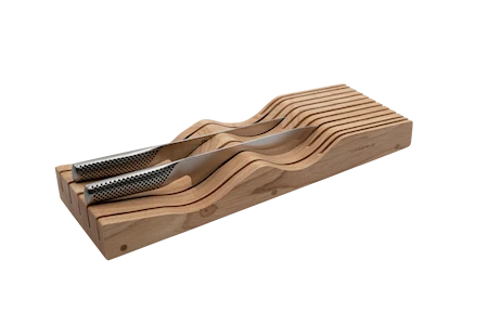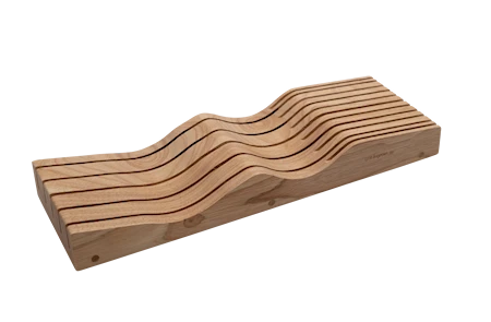 Ved opbevaring af knive er det helt afgørende, at knivene ikke ligger og skramler i skuffen – det kan nemlig ødelægge æggen! Med denne liggende knivblok løser du problemet og kan opbevare hver kniv på sin plads uden at beskadige knivsæggen.