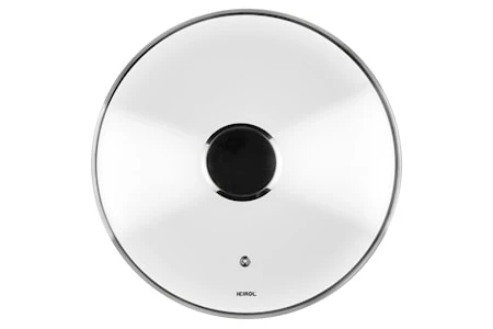 Heirol Glaslåg 28 cm med stålhåndtag. Låget passer til alt køkkenudstyr fra Heirol, som har en diameter på 28 cm. Glasset kan modstå temperaturer op til 180 grader og kan maskinvaskes.