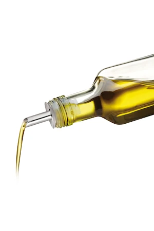 Denne hældetud kan bruges for at hælde mindre olie ud af flasken. Hældetuden gør også, at olien ikke løber ned langs ydersiden af flasken.