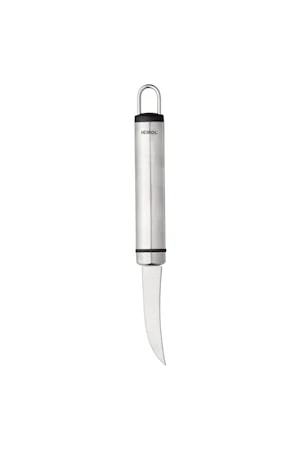 Heirol Steely frugtkniv 19 cm. Alle redskaber i Heirols Steely serien er lavet til at være både meget holdbarer, samt hygiejniske. Håndtaget og værktøjet er lavet af rustfrit stål, og håndtaget er fyldt med plastik for at forhindre snavs, eller vand i at trænge ind. 3 års garanti Kan vaskes i opvaskemaskine
