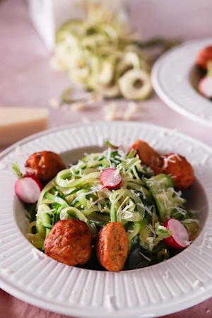 Her kan du nemt forvandle almindelige grøntsager til snoede spaghettistrimler eller flotte, brede bånd. En af de mere populære ting at bruge grøntsagsskæreren til er at lave zucchinipasta, som nærmest er blevet en klassiker de seneste år. At lave sin egen grøntsagspasta er både godt, sjovt og sundt! Prøv dig frem og se, hvad du kan erstatte den traditionelle pasta med. Hvad med at lave kålroepasta, gulerodspasta eller pasta af søde kartofler? Eller hvad med flotte polkafarvede rødbeder som dekoration og tilbehør til din salat?