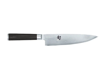 Kokkekniv fra Kai som måler 20 cm. Perfekt til at hakke grøntsager eller skære kød med. Kniven har en kerne af kvalitetsstål VG-10 og et 32-lagers damaskusstål som endda former det flotte mønster.
