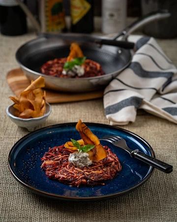 På den måde har råvaren kontakt med stegefedtet under hele stegningen, og stegeoverfladen får de perfekte forudsætninger.