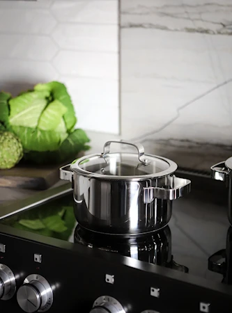 Kasserollerne er lavet i en 3-lags konstruktion for optimal varmetilbageholdelse og varmefordeling.