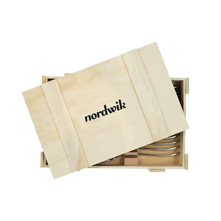 Leveres i en eksklusiv trækasse, som kan bruges til opbevaring af bestikket.
